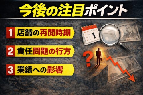 特に企業の公式対応と店舗再開計画が最大の注目点です。
