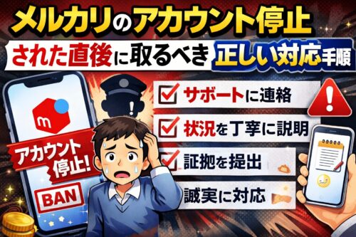 メルカリでアカウント停止や利用制限がかかった場合、最初の対応を間違えると状況が悪化します。