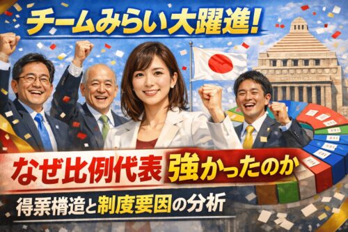 チームみらいの躍進は、既存政党とは異なる軸が一定の支持を得たことを示しています。